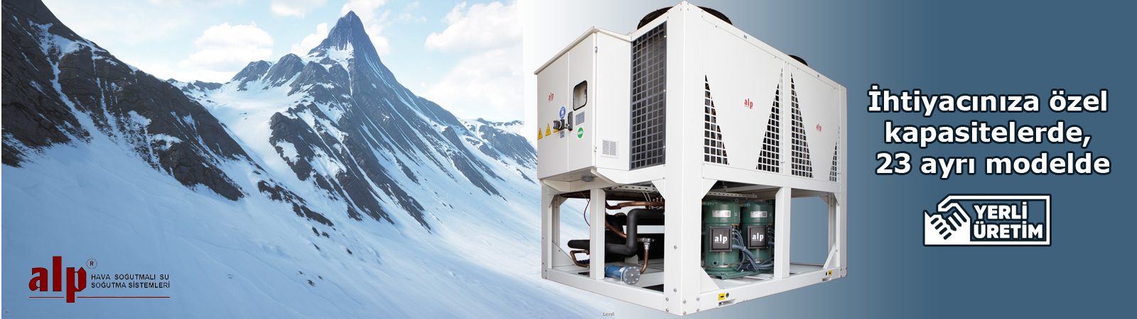 Alp Su Soğutmalı Kondanserli Soğutma Gruplarının kapasiteleri 111,8 kW ile 2.435 kW arasında değişmektedir.